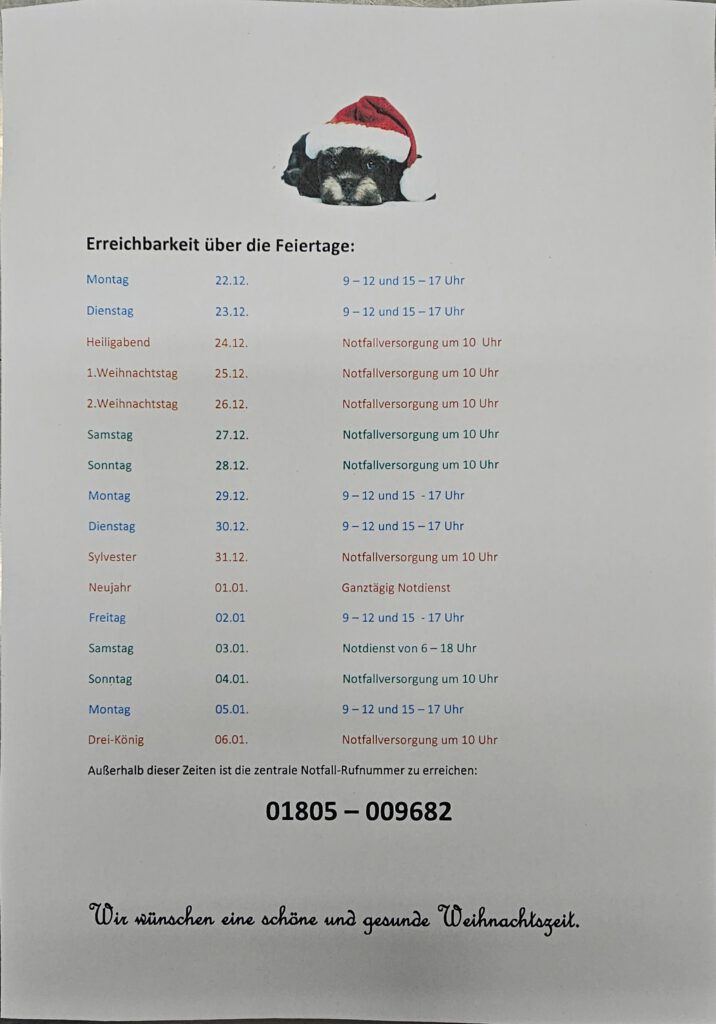 Heiligabend 24.12. Notfallversorgung um 10 Uhr